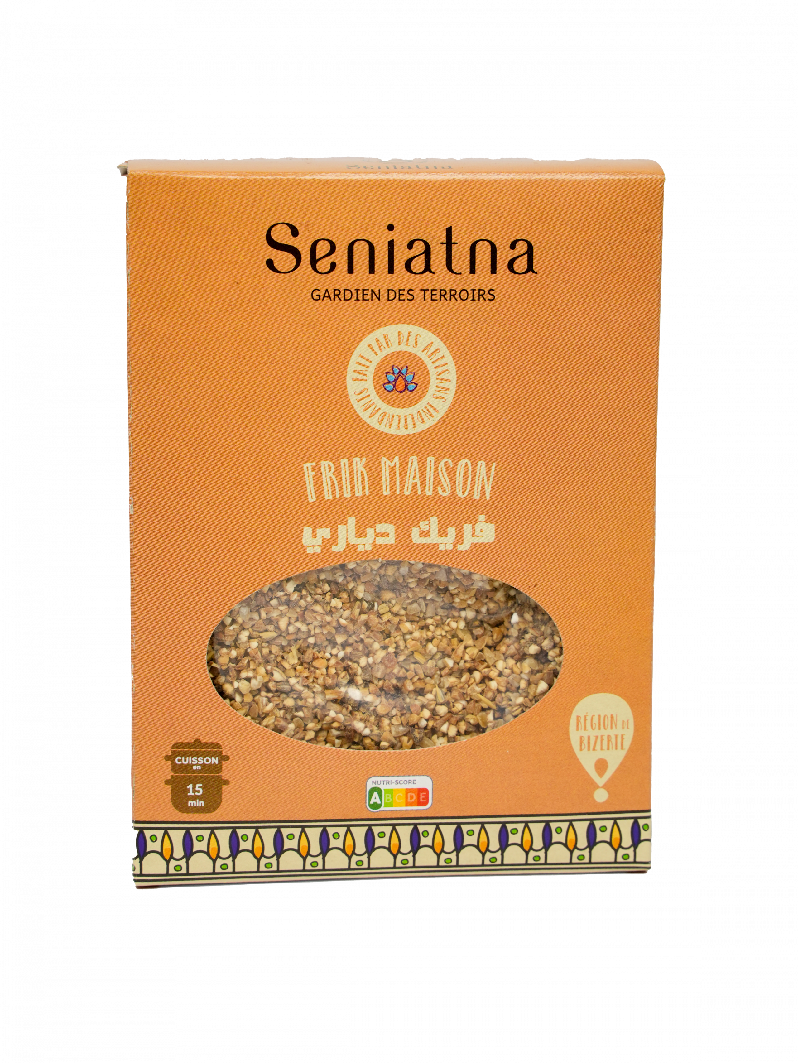 Ce Frik est produit dans les meilleures conditions, en provenance de la régio de Bizerte, soit l’un des meilleurs terroir pour sa cultivation, toujours dans le respect de la tradition, sans aucun additif, ni conservateur. Obtenu à partir de grains d’orge concassés et grillés, il offre une palette de saveurs profondes et terreuses, avec une texture à la fois moelleuse et légèrement croquante, grâce à son processus de grillage méticuleux.
