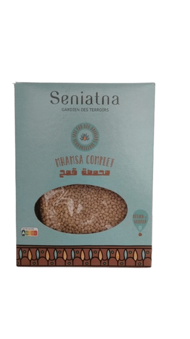 La Mhamsa complet tunisienne incarne la tradition avec chaque grain méticuleusement préparé à la main, un par un, à partir du blé complet, préservant ainsi son authenticité et sa texture distincte. Cette pratique artisanale témoigne du dévouement à perpétuer les savoir-faire ancestraux de la cuisine tunisienne. En plus de son caractère traditionnel, la Mhamsa complet offre également des bienfaits nutritionnels, étant riche en fibres et en nutriments essentiels provenant du blé complet, contribuant ainsi à une alimentation saine et équilibrée.
